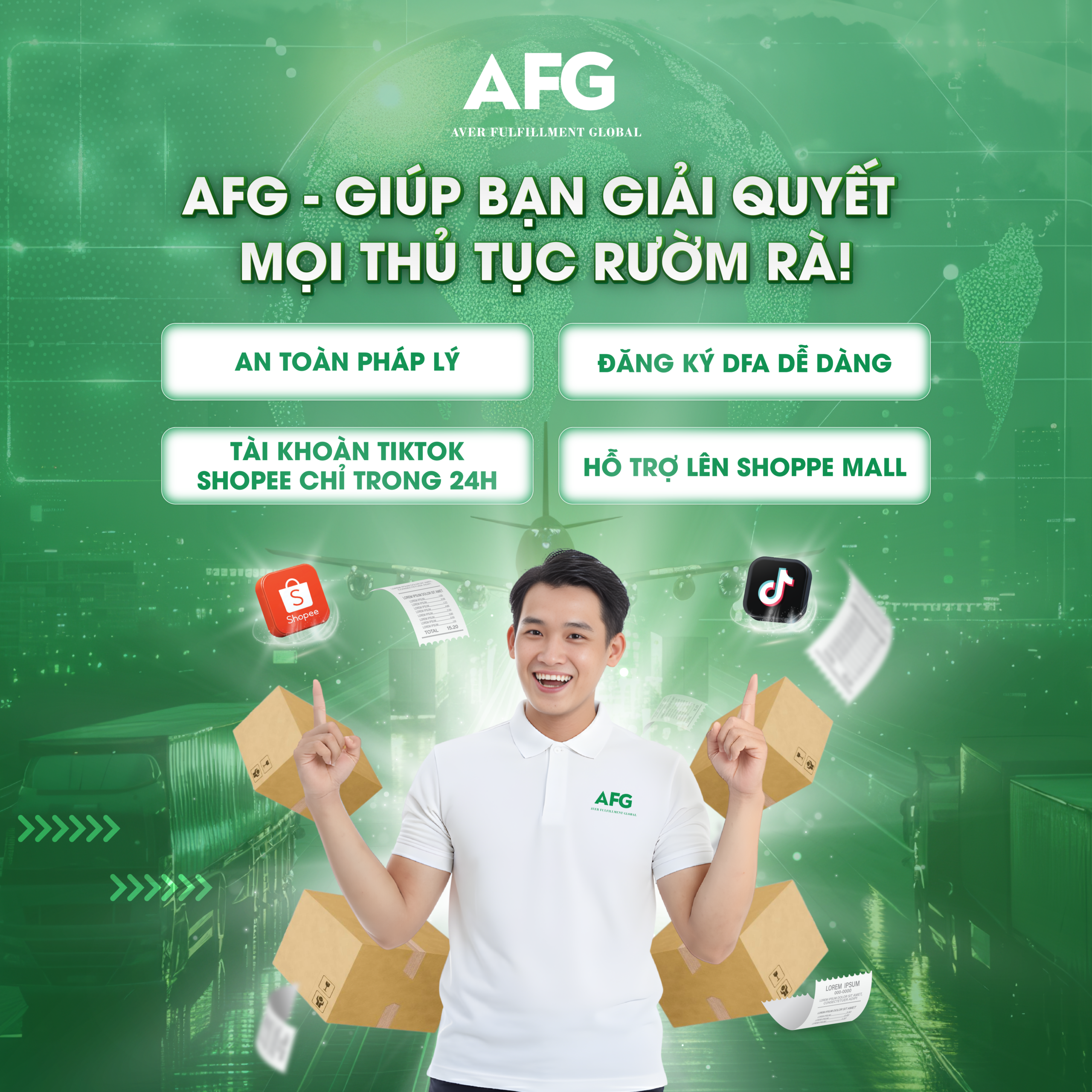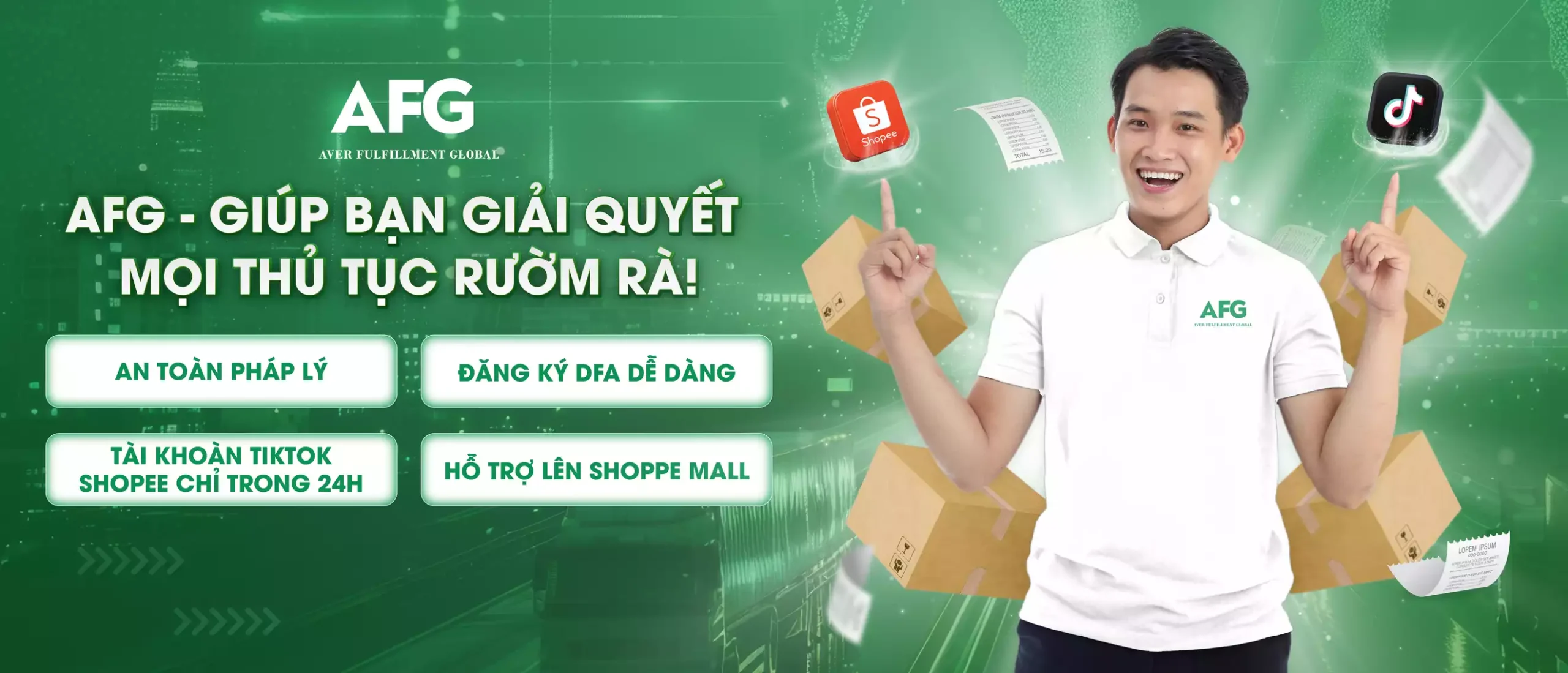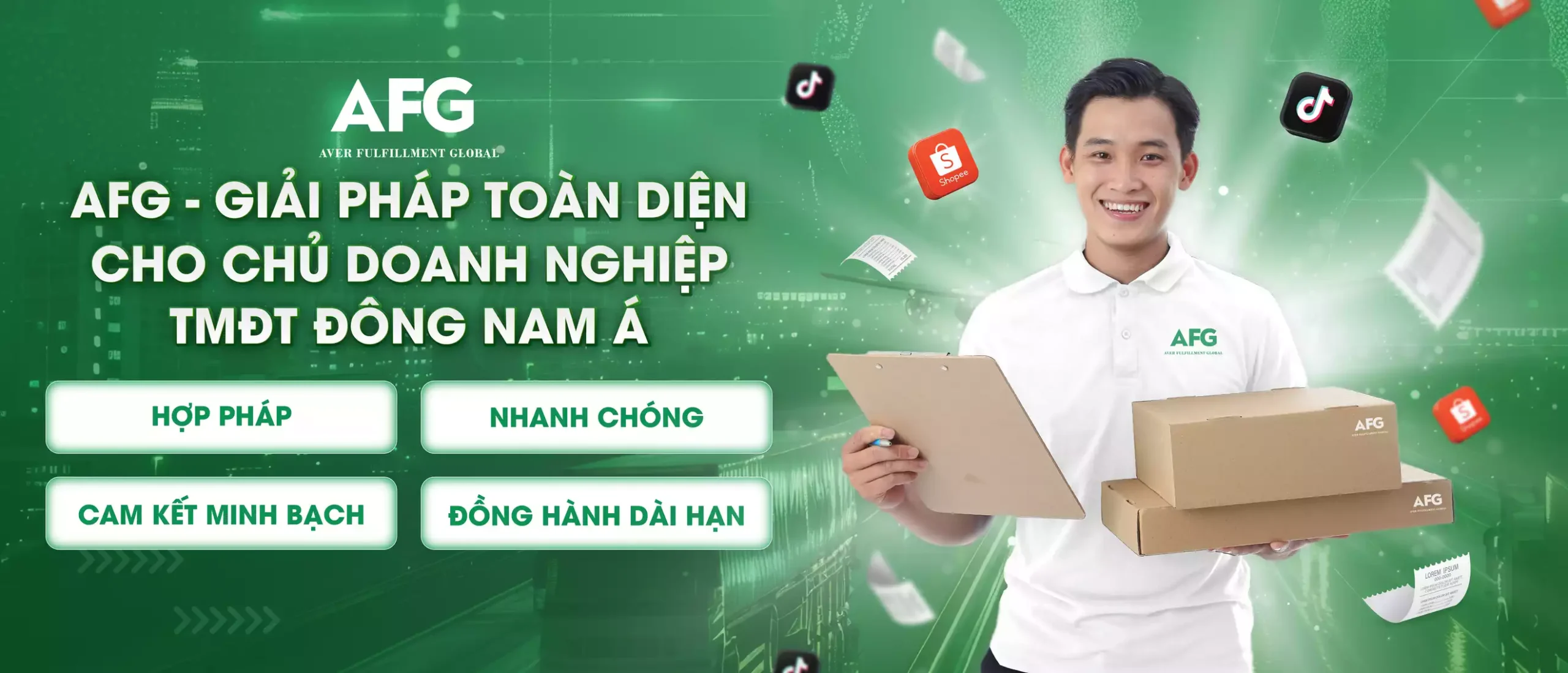 Sở hữu hơn 8 năm kinh nghiệm thực chiến trong lĩnh vực fulfillment và logistics xuyên quốc gia, AFG cung cấp giải pháp vận hành toàn diện từ kho vận, giao hàng, telesale đến đối soát COD.
